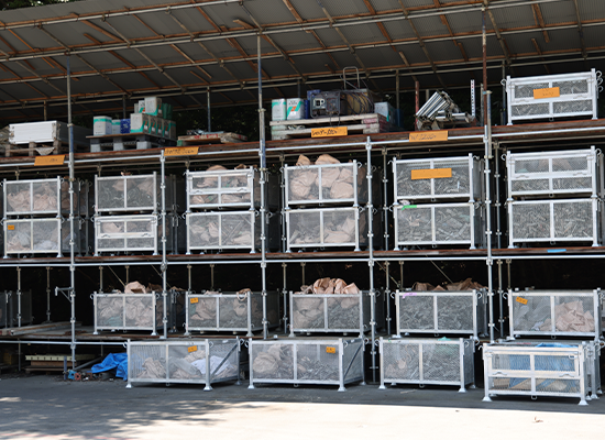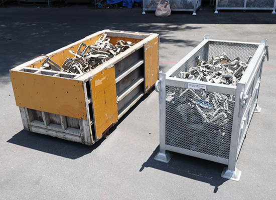 また、木製の資材金物箱では、運搬時に底抜けのリスクがありますが、スチールボックスはその心配がなく、安全に資材を運搬できます。過酷な使用環境でも長期間安心してお使いいただけます。